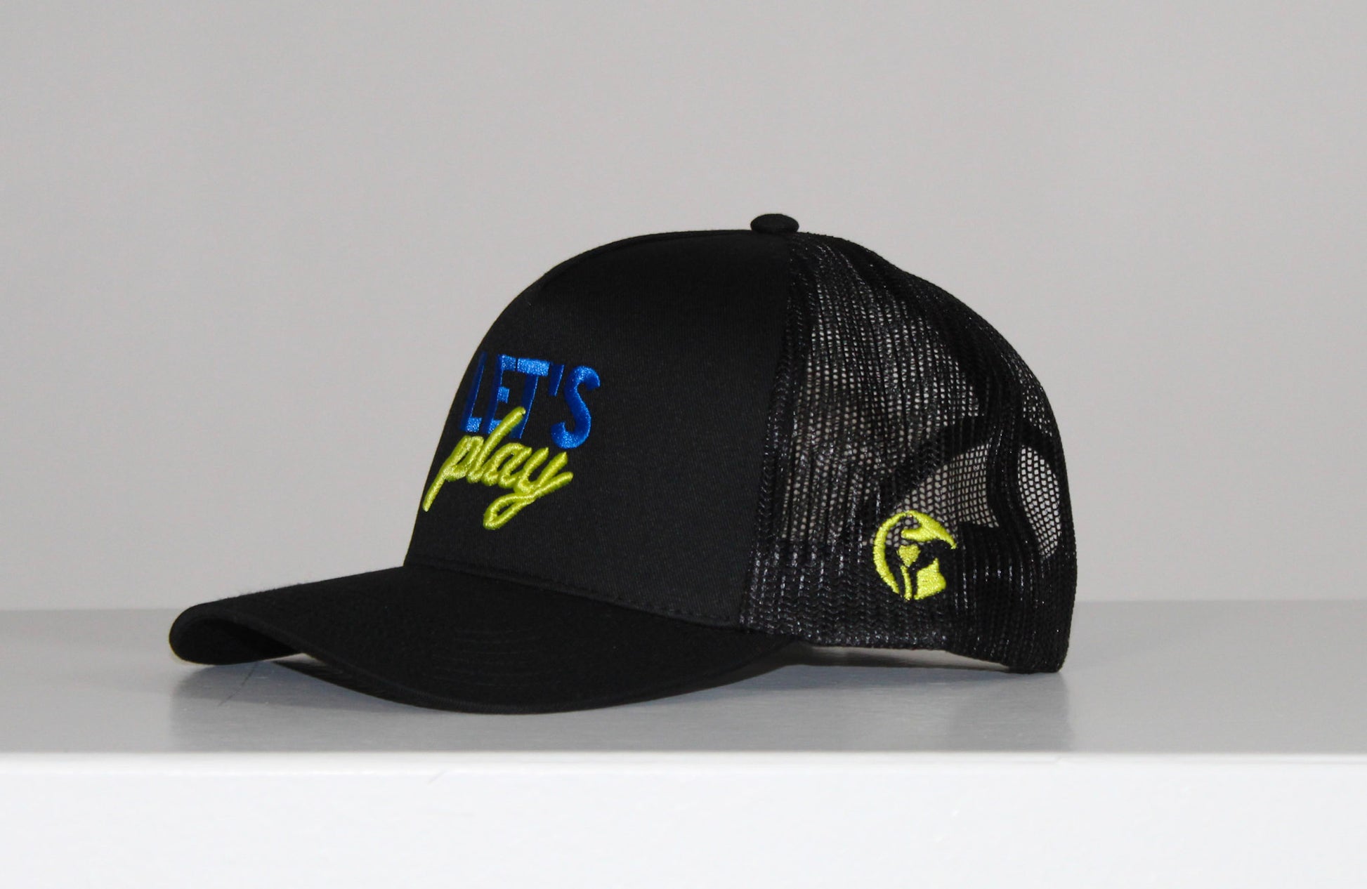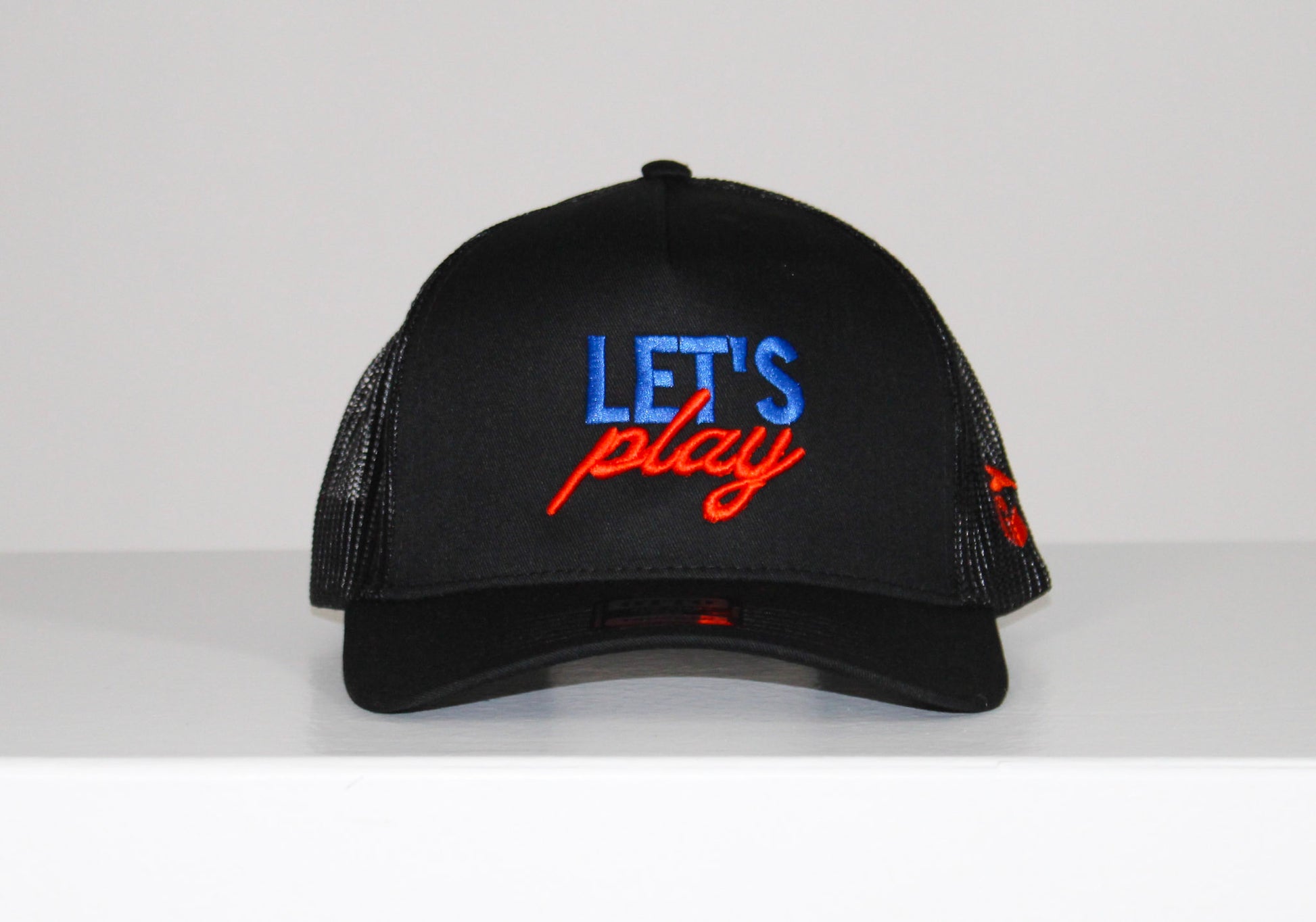 The Let’s Play Trucker Hat is made for spontaneous plans, competitive energy, and showing up ready for whatever’s next. Designed in classic black with a breathable mesh back and a plastic adjustable snapback, this hat brings comfort, attitude, and effortless cool into one must-have piece.